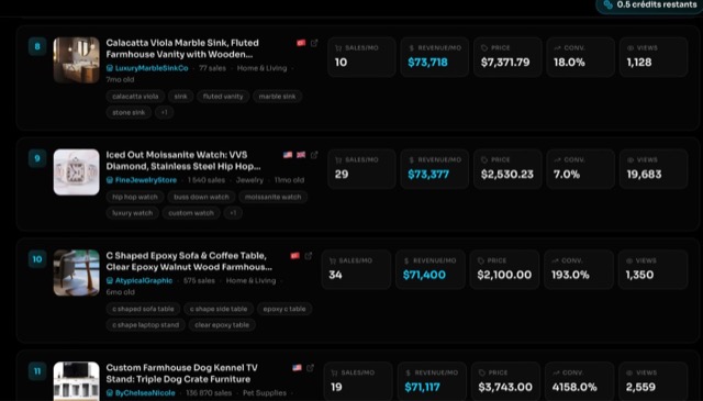 Espion les top sellers, leurs prix, ventes et stratégies.