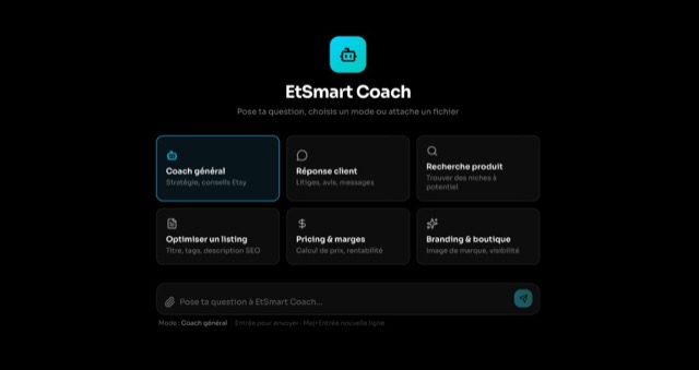 “Avant Etsmart, je perdais des heures sur l'analyse et les listings. Maintenant je valide mes idées, je génère mes visuels et je lance — tout en un endroit.”